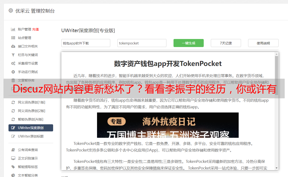 优采云 发布时间: 2025-10-28 22:30要是你正为Discuz网站内容更新而苦于无措,每日都手动去复制粘贴文章直至深夜,那么我朋友李振宇的经历,没准能给你些许启发。