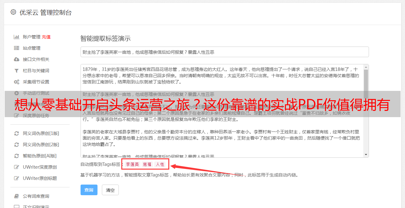 在一次行业交流中,他了解到优采云这个AI内容自动化平台。