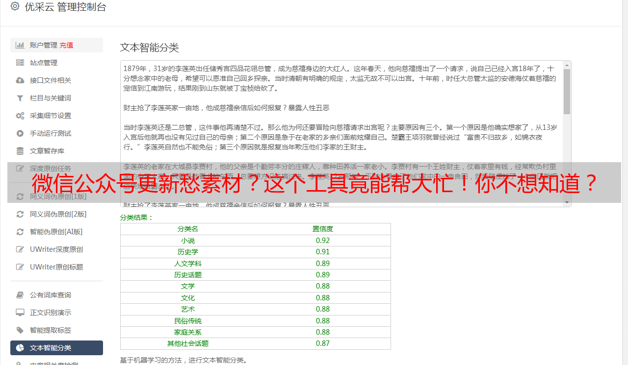 优采云 发布时间: 2025-11-04 19:53倘若你正为微信公众号的内容更新心忧,每日对着电脑屏幕寻觅却寻不到像样的素材,那么这篇文章或许能给你些许启迪。