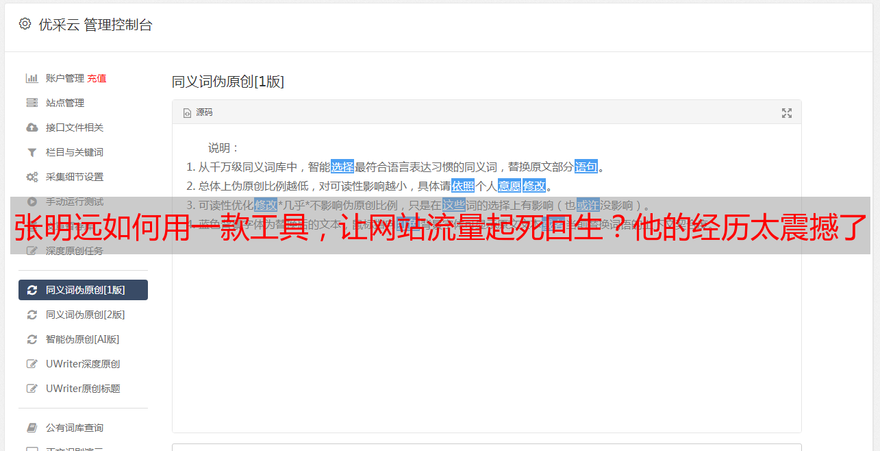 他开启了深度原创的模式,系统能够按照采集来的内容,自动生成原创的文章。