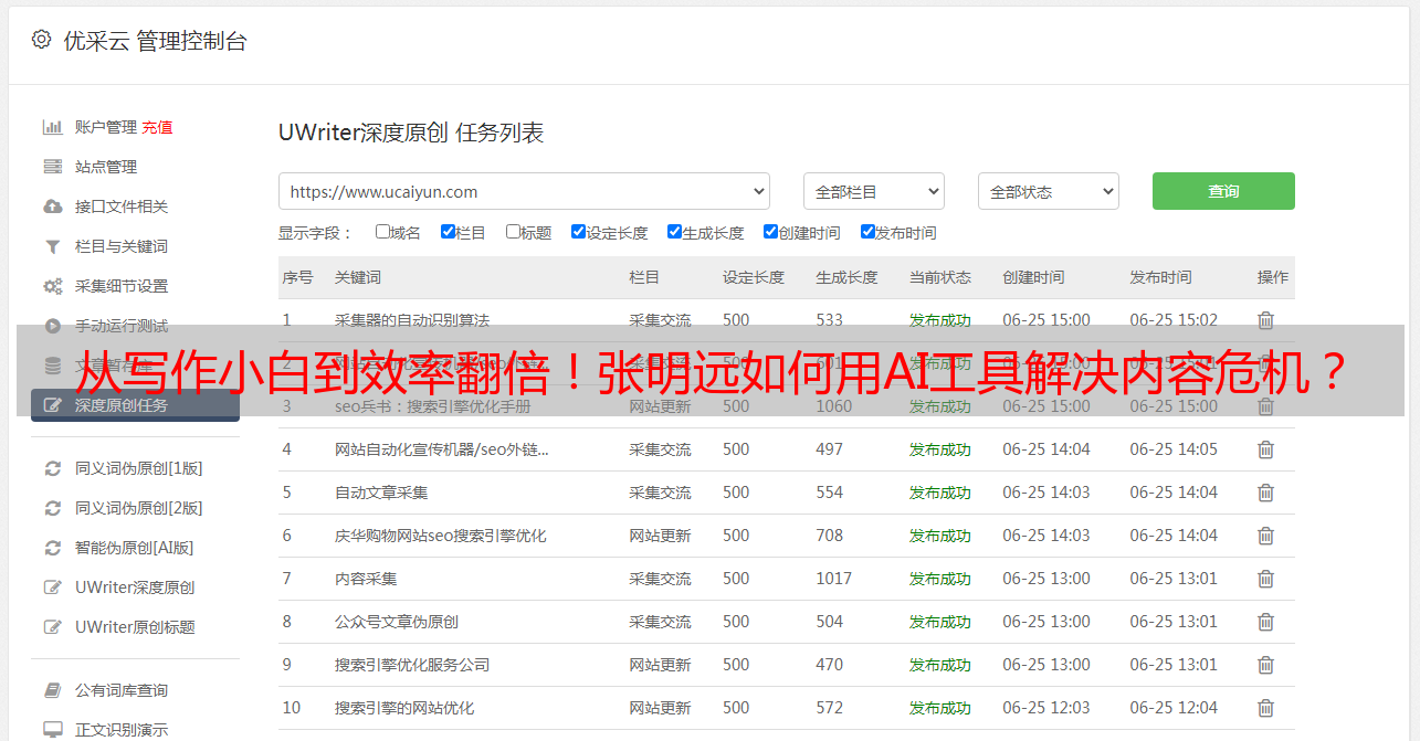 系统在每一个小时的时间跨度内,能够产出多篇具备原创性质的文章,并且借助自动发布的功能,直接推送至网站之上。