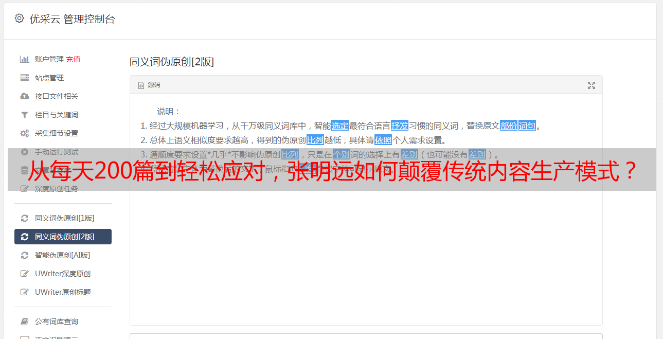 在一次行业交流会上,张明远了解到优采云这个AI内容工厂。