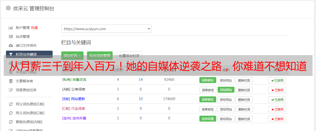 优采云 发布时间: 2025-11-08 23:17要是你正处于运营自媒体的状态当中,然而却因为没办法实现变现而感到苦恼,那么这篇文章说不定能够给你带来一些有所启发的地方。
