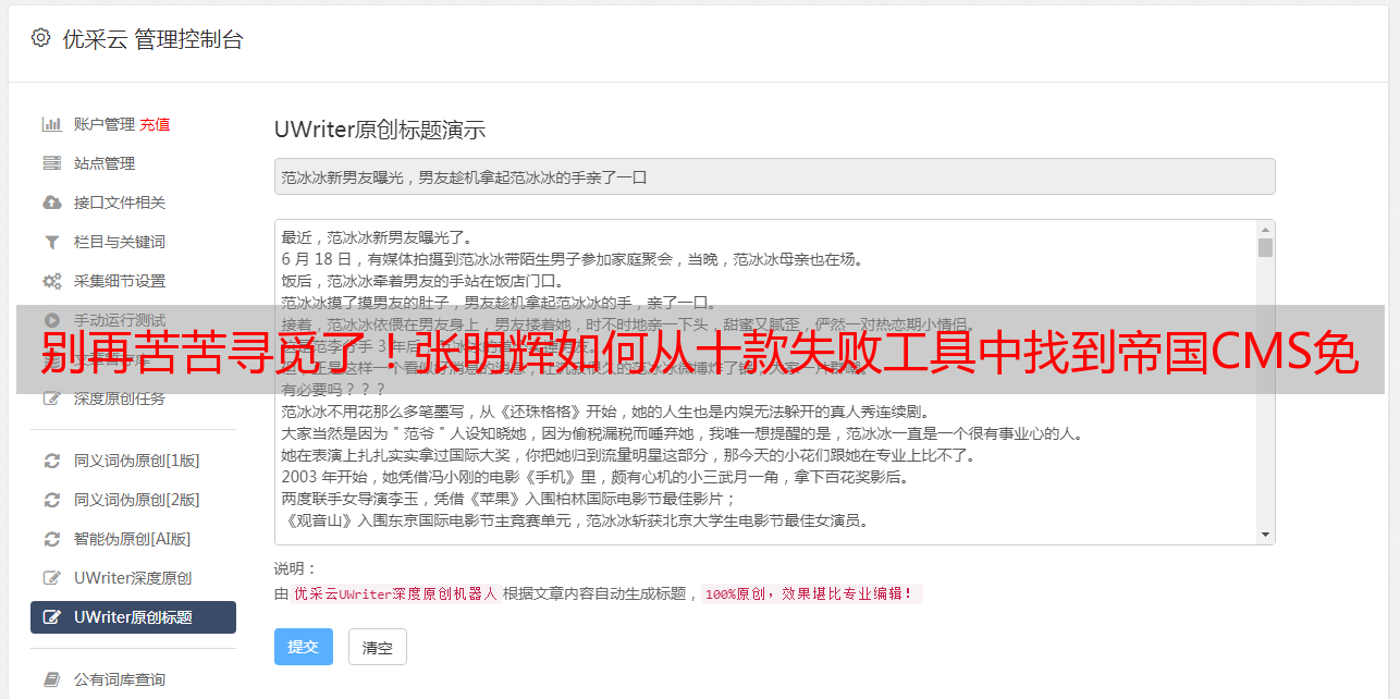 除了采集,优采云的内容加工能力也让张明辉大开眼界。