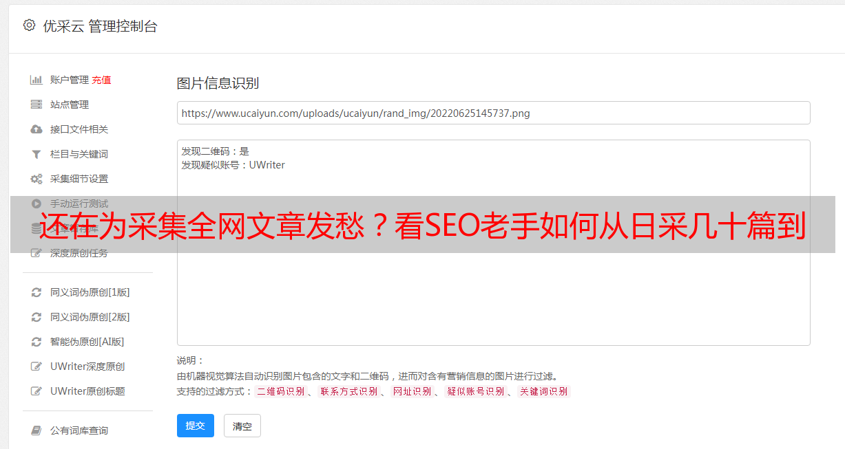 张明远在一次行业交流会中,听闻有人说到了优采云,它是这样一个存在,被宣称能够达成文章获取、过滤、加工以及发布全流程都具备自动化操作的AI内容工厂 。