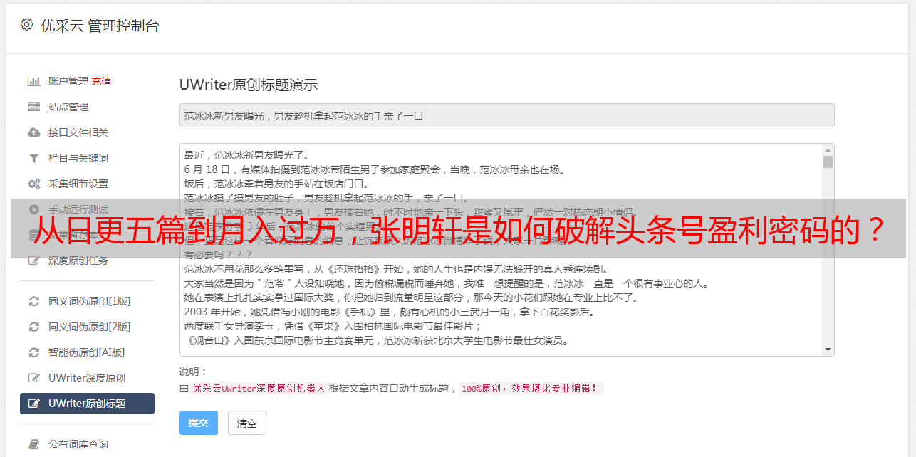 头条如何盈利结合优采云的内容优化