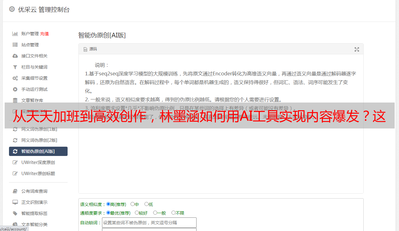 在五月中旬的时候、召开一次之时业内交流会议之上、他知晓了那个被称优采云的、人工智能内容制造工厂 。