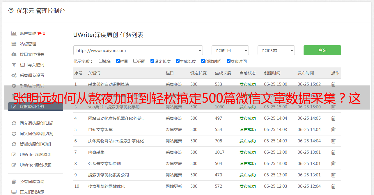 张明远如何从熬夜加班到轻松搞定500篇微信文章数据采集?这个转变太震撼了