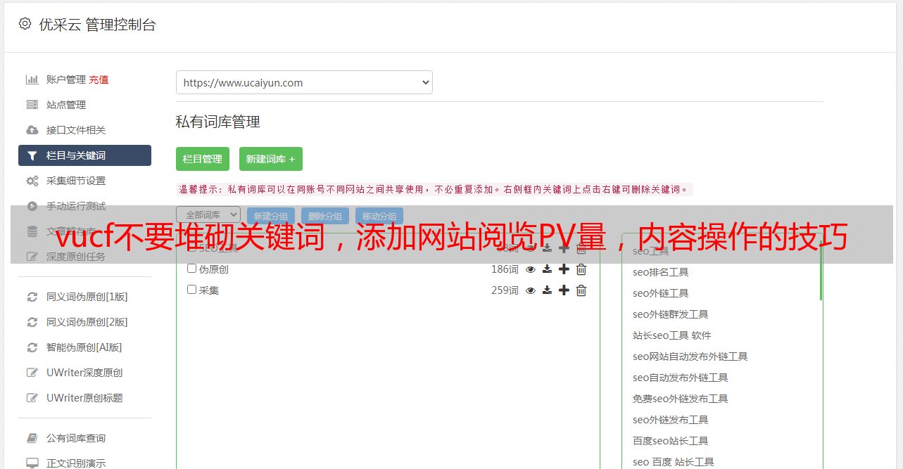 vucf不要堆砌关键词,添加网站阅览PV量,内容操作的技巧