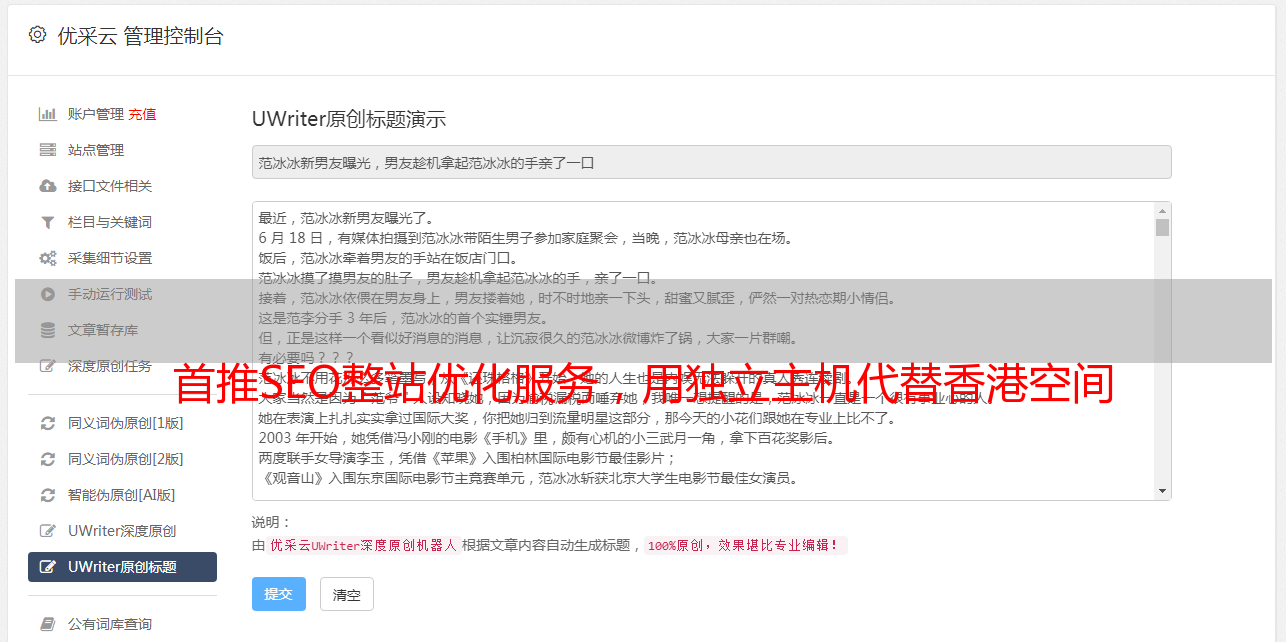 二、删删:删掉一些以前的伪原创和几十个喜欢的文章,因为我用的是phpcmsv9做自己的二次开发,刚上线,为了快速填满首页,我' m伪原创,我采集了几十个文章填满首页,没想到这给我的网站造成了麻烦。