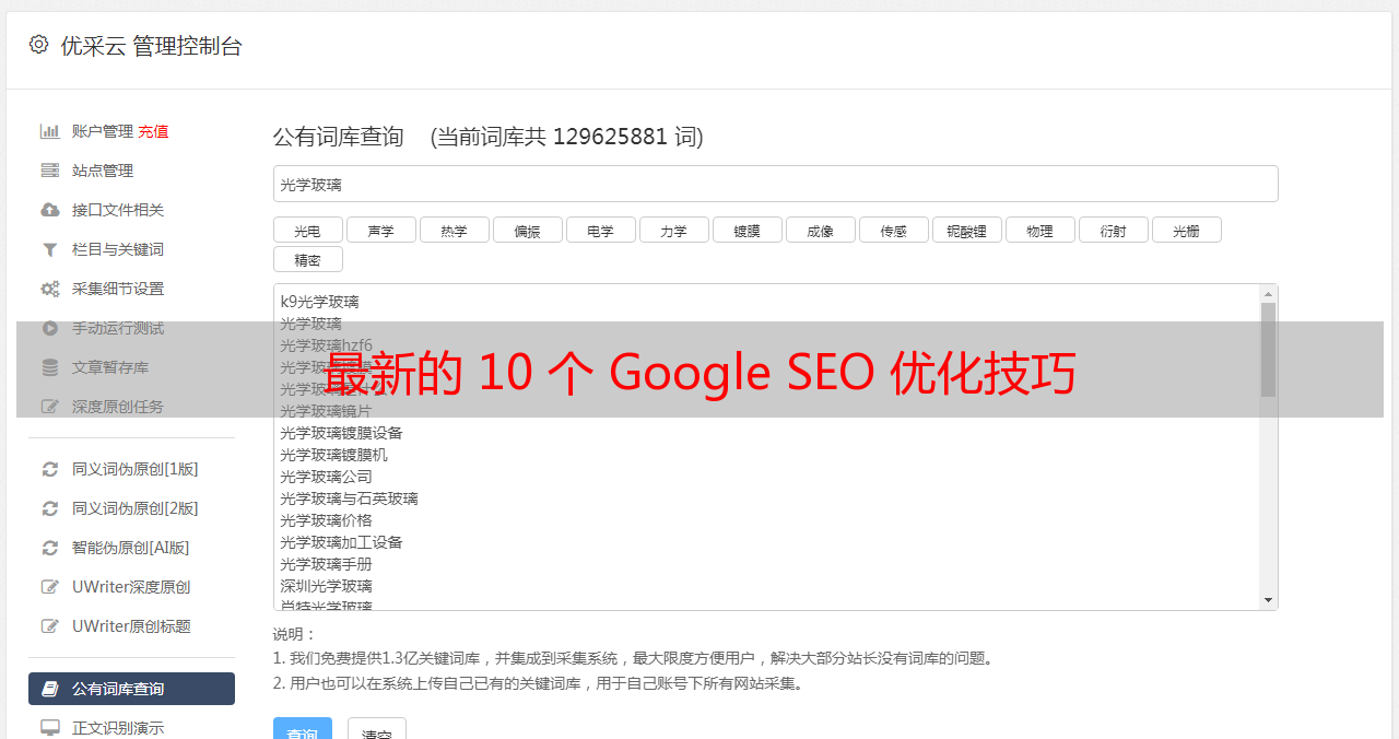 优采云 发布时间: 2021-07-01 18:52最新的 10 个 Google SEO 优化技巧