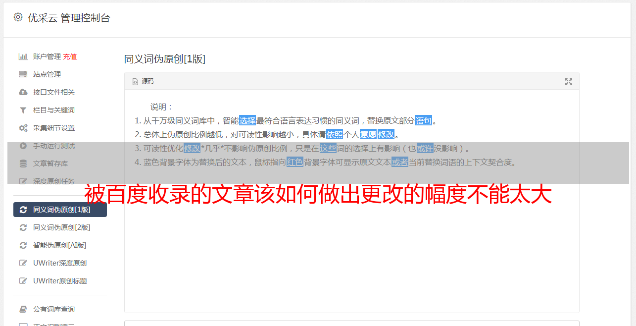 收录之后的文章虽然可以改,但需要注意的是改的不能太大,比如之前的文章页面内容不能改得面目全非。 文章的部分更正,内容的添加,外链的构建还是允许的。并且需要注意的是,网页的标题是众所周知的,不要更改,否则会导致网站被降级的风险。