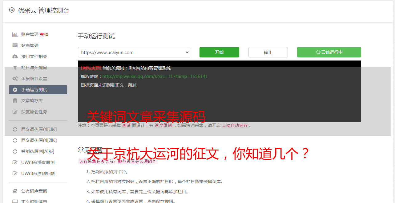 (1)注册了网站后,发现站台个人页面上有一篇关于京杭大运河的文章。另外,九寨沟地震前,机器人写了一篇简讯第一次。所以我在想,既然机器可以写简讯,那么它也可以用来写一篇关于京杭大运河的文章吗?有一个大致的想法,那么我们开始吧。