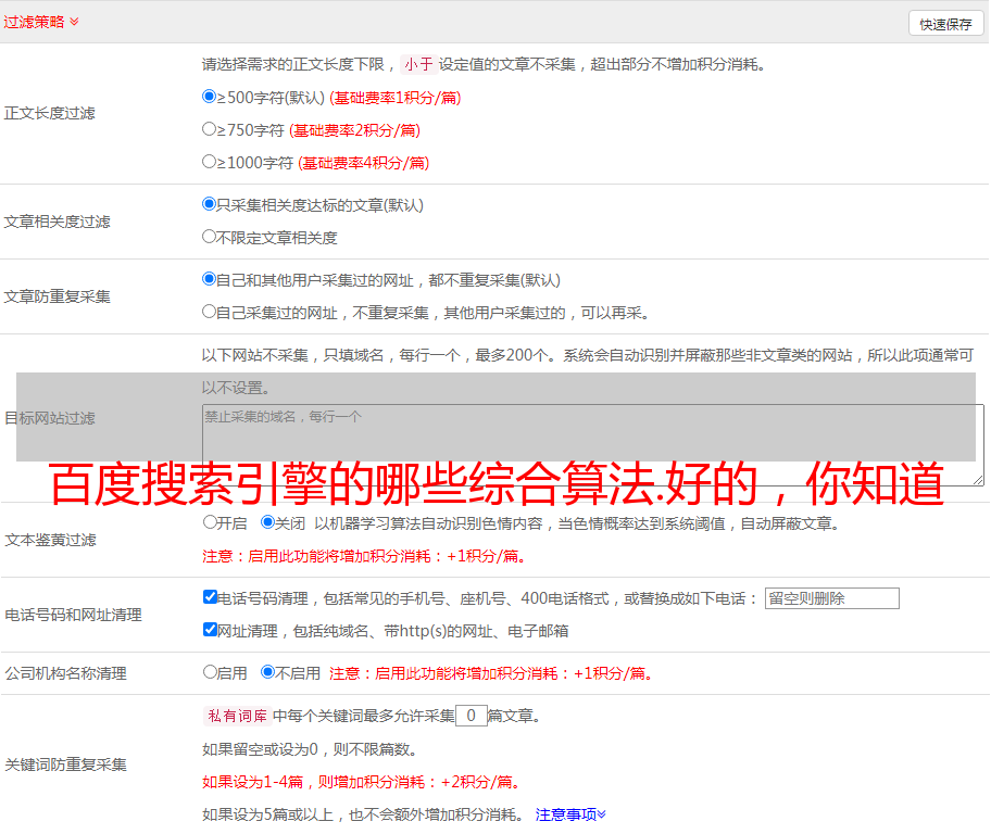 摘要:通过上述算法,当文章的综合值达到搜索引擎的标准值时,搜索引擎将收录其网站页面。