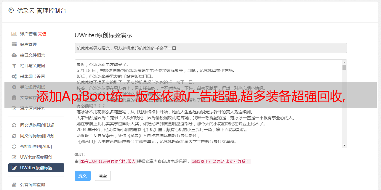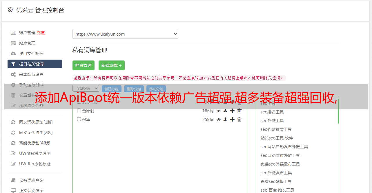 优采云 发布时间: 2021-07-04 19:11添加ApiBoot统一版本依赖广告超强,超多装备超强回收,