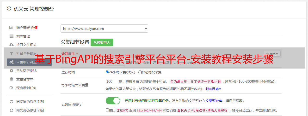 优采云 发布时间: 2021-07-04 20:31基于BingAPI的搜索引擎平台平台-安装教程安装步骤