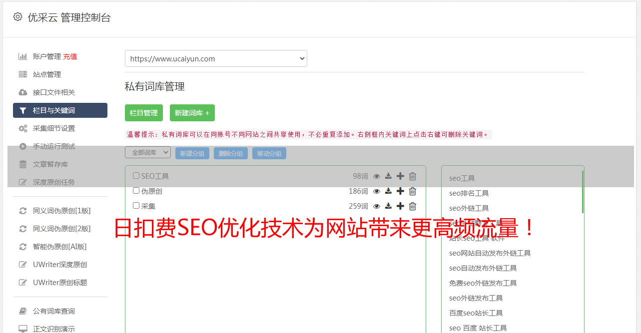 我们比***省钱。通过设计,SEO优化可以达到你期望的百度排名效果,而且价格确实是***的一半以上!良好的排名结果SEO核心优化技术可以轻松优化一个核心词,将一批关键词匹配到首页,为网站带来更多的高频流量!优化效果不错。通过网站优化快速提升关键词的排名,输入您要优化的关键词,1到15天内提升效果可见!每日扣SEO优化根据公司自身官网和发展规划确定,由内而外的优化方式极大地保证了服务效果和实际收益。效果覆盖面广。可根据不同搜索引擎的特点,进行有针对性的排名优化,排名效果覆盖各大主流搜索引擎!良好的监控效果智能监控系统让排名效果和成本消耗一目了然,方便用户随时随地查询排名效果的实时数据!系统简单,操作系统操作简单,只需添加网址和关键词一步即可等待排名效果!确保您的优化任务节省时间、麻烦和资源。 一、全站内置的SEO优化机制,让企业网站更容易推广,更有营销力。