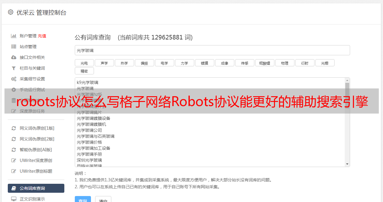 优采云 发布时间: 2021-07-05 21:22robots协议怎么写格子网络Robots协议能更好的辅助搜索引擎蜘蛛