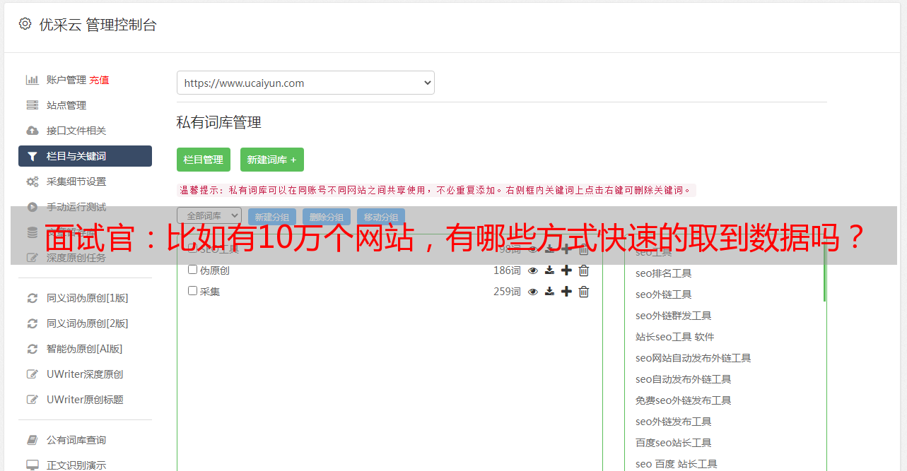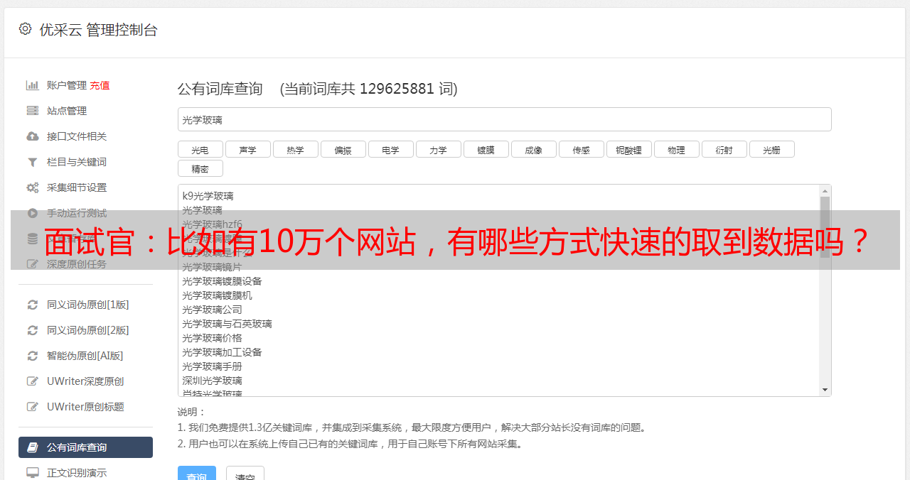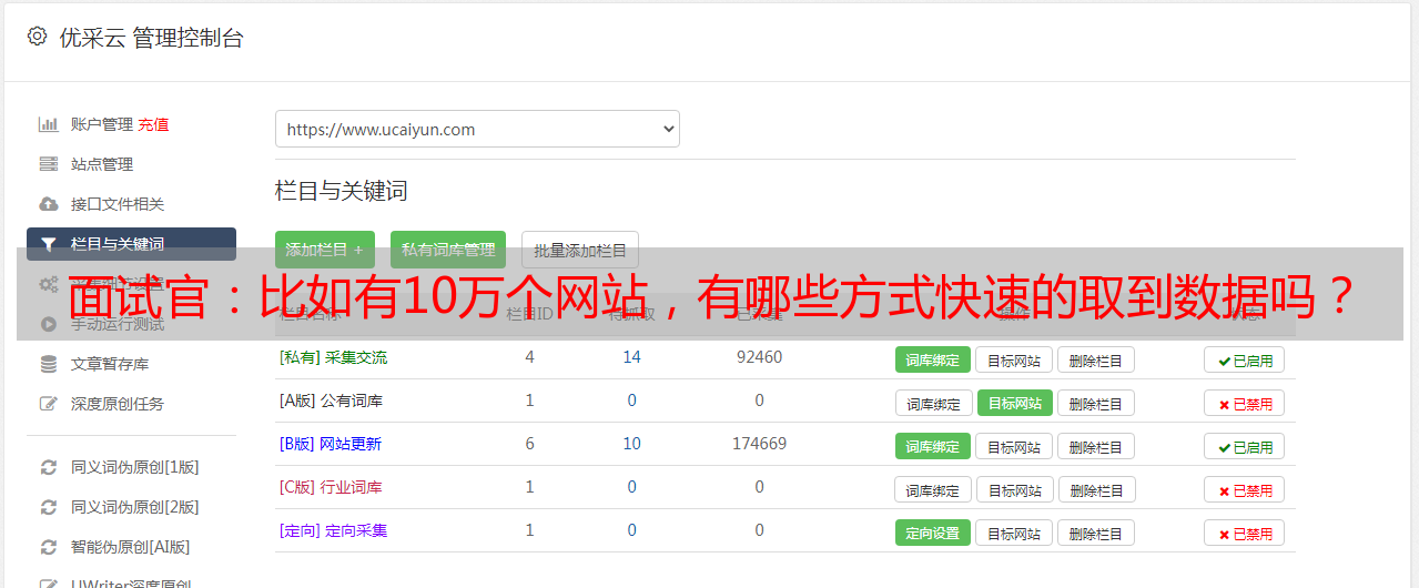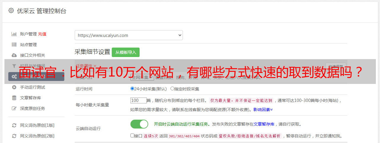当我们搜集到10万个网站以后,首先面对的就是怎样管理、如何配置采集规则、如何监控网站正常与否等。