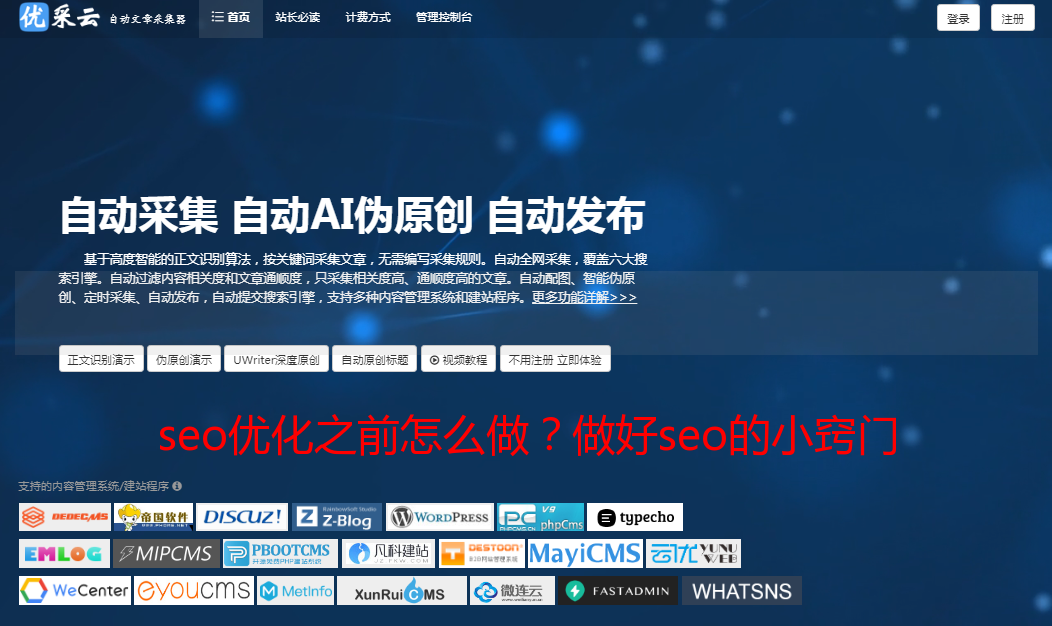 过去我们通常说:seo也叫seo,也叫微博推广,主要是挖掘客户群,然后通过微博等方式发布,这样可以优化竞价排名并发表。那么今天,就让我们一起来了解一下如何做好seo,今天就和大家分享一些做seo的小窍门。 seo优化前要做什么?下面我们就来看看下面三个可以做的注册组。将发送文章的组定义为新的网站。