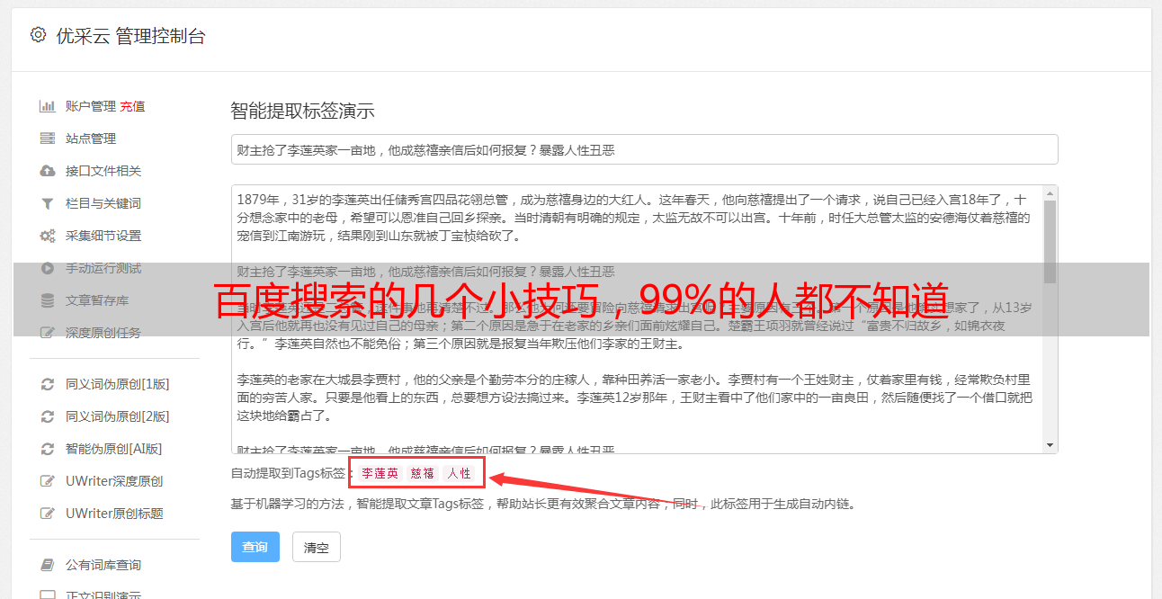 优采云 发布时间: 2021-07-07 21:03百度搜索的几个小技巧,99%的人都不知道