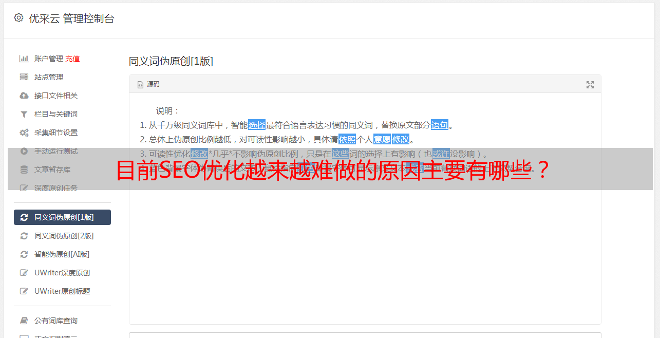 优采云 发布时间: 2021-07-07 22:18目前SEO优化越来越难做的原因主要有哪些?