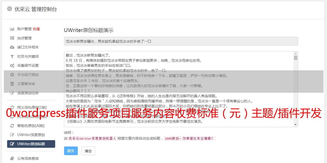 0wordpress插件服务项目服务内容收费标准(元)主题/插件开发