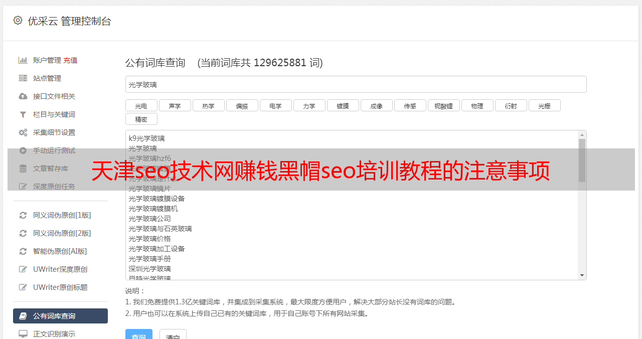 优采云 发布时间: 2021-07-08 18:18天津seo技术网赚钱黑帽seo培训教程的注意事项