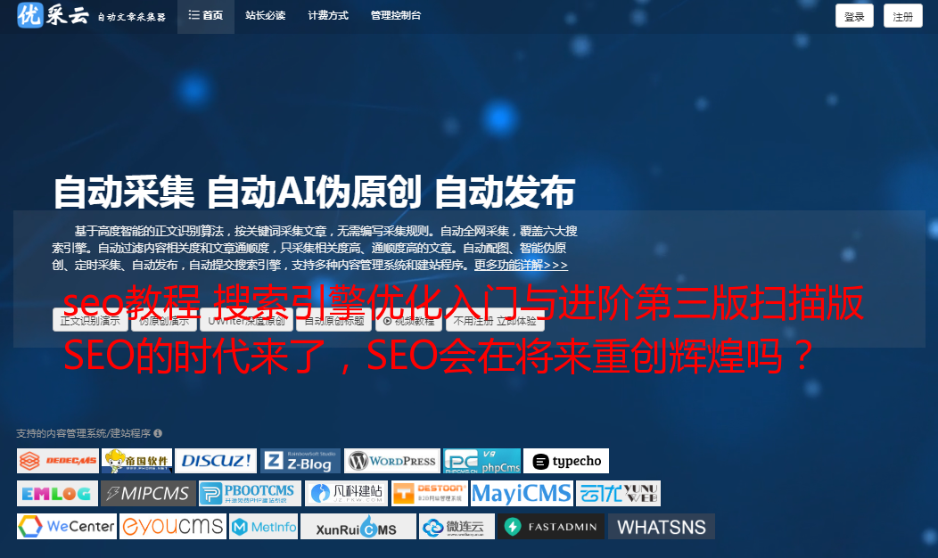seo教程 搜索引擎优化入门与进阶第三版扫描版 SEO的时代来了,SEO会在将来重创辉煌吗?