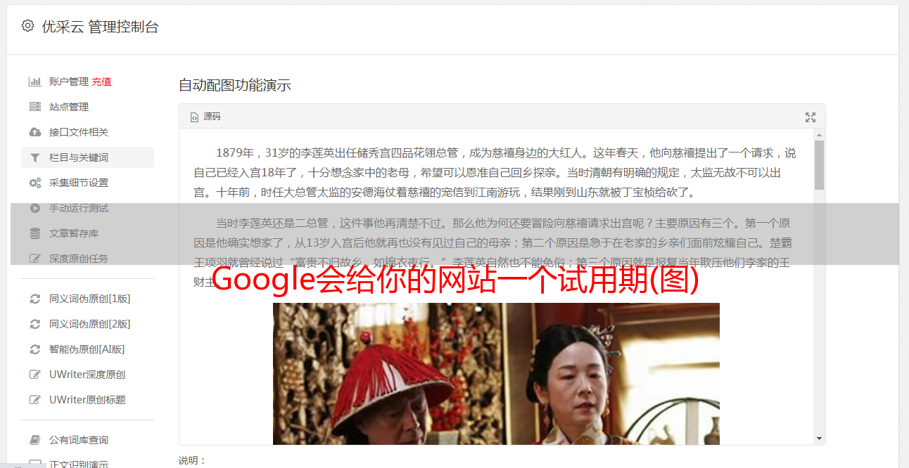 当您开始新的网站 时,Google 会给您的网站 一个试用期。在此期间,您的新网站权时不会获得很好的排名,但页面收录不会受到影响。百度上的回应是很久没有收录了,也没有百度快照。在百度上,这叫做审核期,这当然不是官方声明。