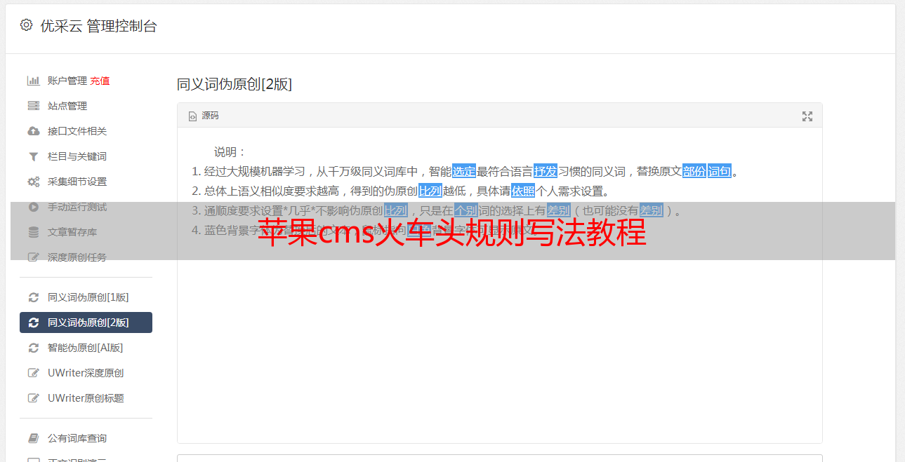 采集完地址后,我们就要对具体整篇文章地址下的文章做“文章”了。将标签切换到“第二步:采集内容规则”,我们以这篇文章为例:,来获取我们想要的内容,包括:文章标题、发表时间、作者、浏览次数、文章内容、文章分类等。查看网页源代码,如果你能懂html就挺好理解。我们发觉文章标题:分享一款在线音乐播放器,界面漂亮 前面有如此一串代码: <h1 class=”article-title“>,正好这串代码在源代码中惟一存在火车头采集教程,我们可以使用它来确定文章标题。规则写法如下: