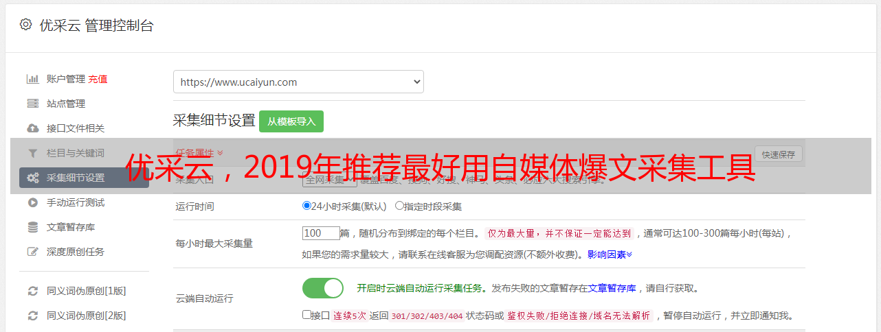 优采云,2019年推荐最好用自媒体爆文采集工具