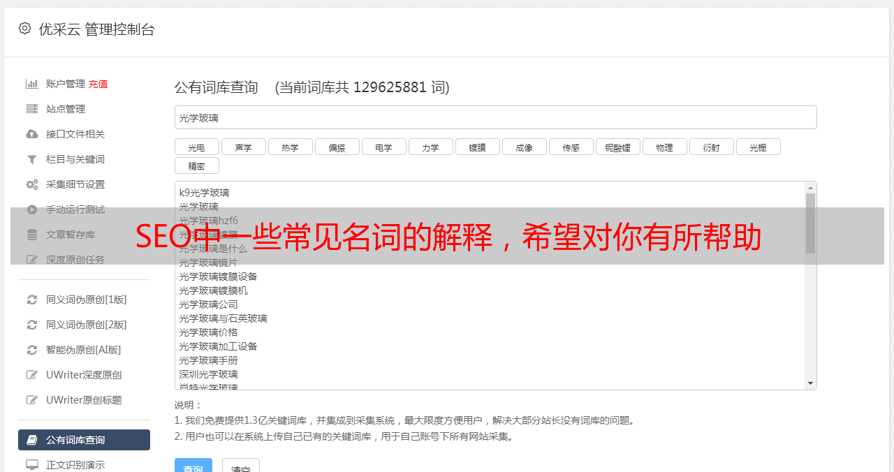 优采云 发布时间: 2021-07-12 22:34SEO中一些常见名词的解释,希望对你有所帮助