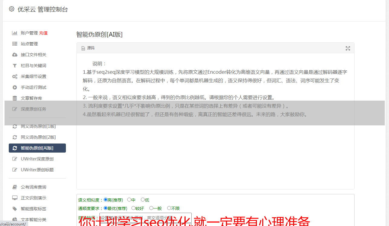 任何技术都是从0开始的,对于想要实现SEO的新手小白来说——这个过程是漫长而艰巨的。如果您打算学习SEO优化,您必须做好心理准备。那里没人。你可以听一听,一学就会技术。首先要了解搜索引擎:所谓搜索引擎就是根据用户的需求和一定的算法,形成索引倒排结果,为用户提供搜索技术。