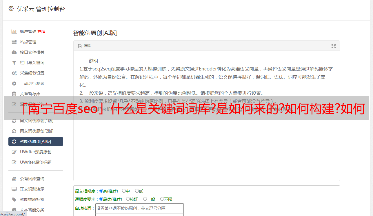 优采云 发布时间: 2020-08-09 15:44「南宁百度seo」什么是关键词词库?是如何来的?如何构建?如何降低网站关键词库?