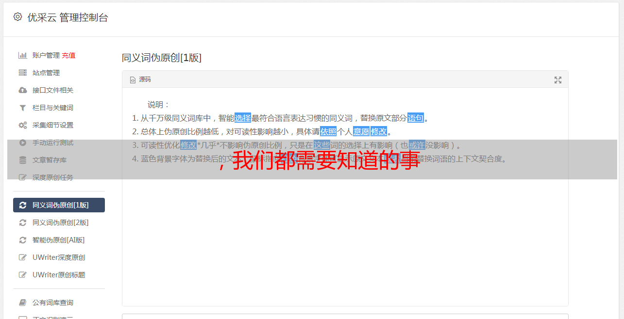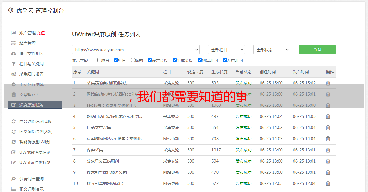 当网站定位后,你就会知道你的网站想提供给用户什么,然后围绕这个定位写一些让用户满意的原创文章,让用户有品质。今天的搜索引擎如原创sexuality 和高质量的内容。你不能从别人那里采集文章,不能有排名,甚至可能不包括在内。但是作为伪原创人,拿别人的文章改也可以,但是要区分和提供原创文章不能提供的内容,所以有排名和记录。 原创内容的创作一定要能够满足用户的需求,不是为了原创,所以没意思。