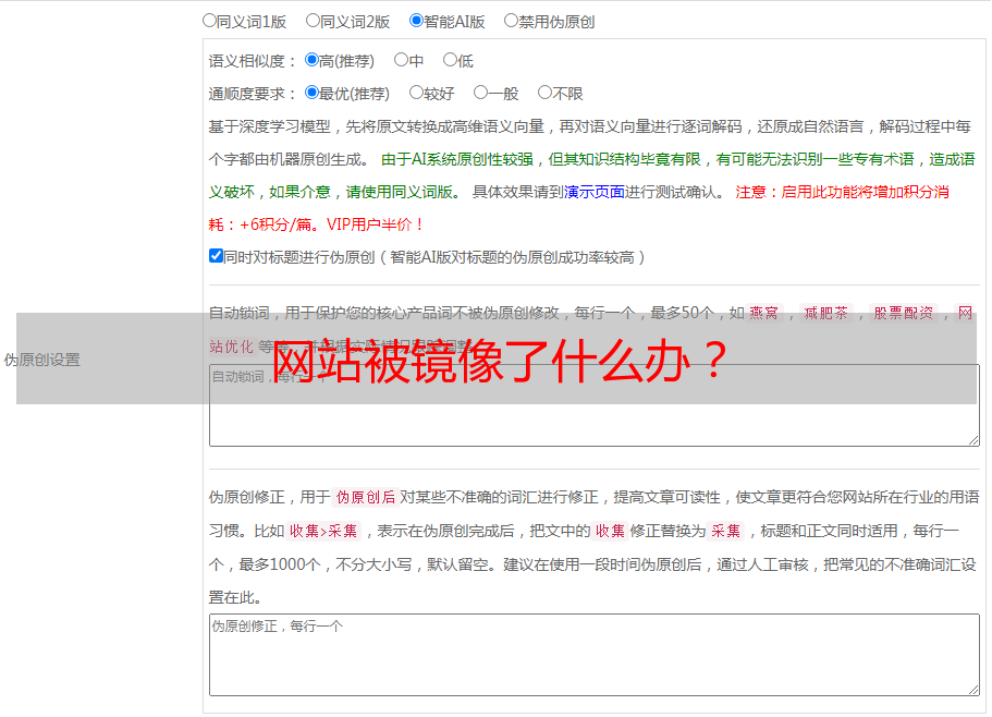 以及的说页面上加上官网链接、网站名称、版权声明等等的,搜索引擎会识别那个是正版。但镜像小偷程序连链接带文字都可以所有手动更改,这么做并没有用。