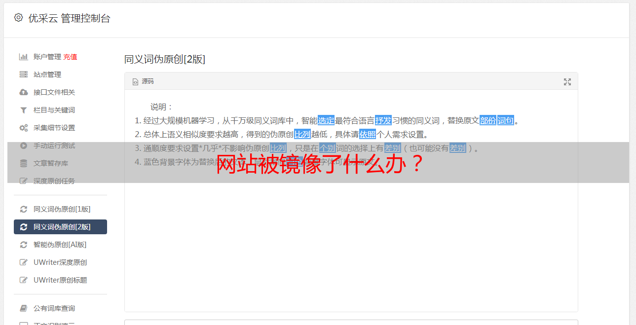 对有必须政治、权重的网站,镜像网站取代原版官网的或许性微乎其微。但从心态角度考量,被他们镜像,内容被对方拿走,即使没有其他严重后果,也或者挺讨厌的一件事。