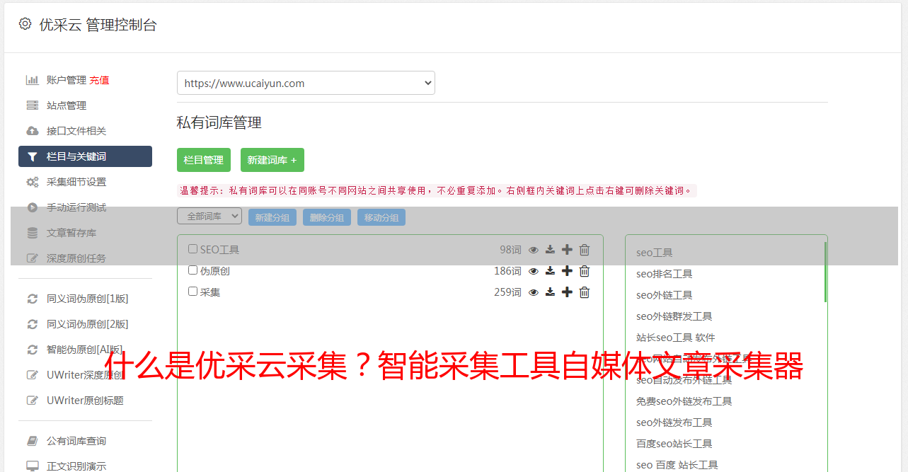 优采云采集是自媒体材料搜、文章原创的运营工具,一键发布,有效提升新媒体运营效率,降低企业成本。