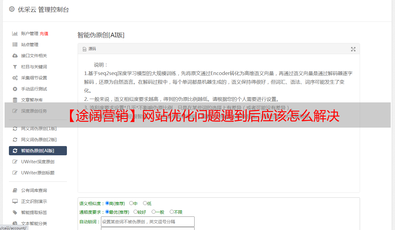 优采云 发布时间: 2021-07-16 19:05【途阔营销】网站优化问题遇到后应该怎么解决