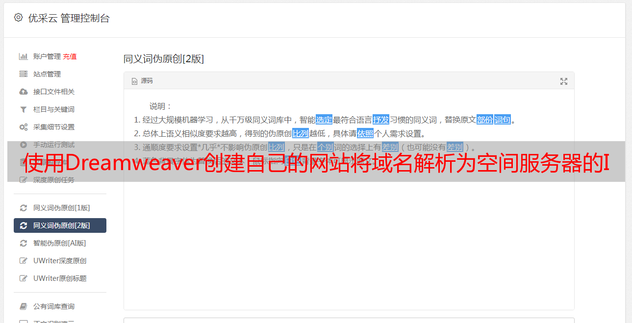 优采云 发布时间: 2021-07-16 19:19使用Dreamweaver创建自己的网站将域名解析为空间服务器的IP地址