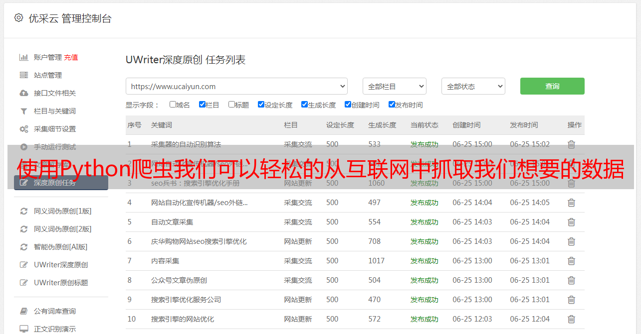 优采云 发布时间: 2021-07-16 21:33使用Python爬虫我们可以轻松的从互联网中抓取我们想要的数据