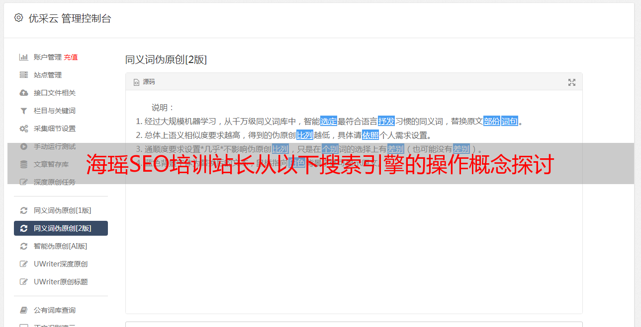 优采云 发布时间: 2021-07-17 03:18海瑶SEO培训站长从以下搜索引擎的操作概念探讨