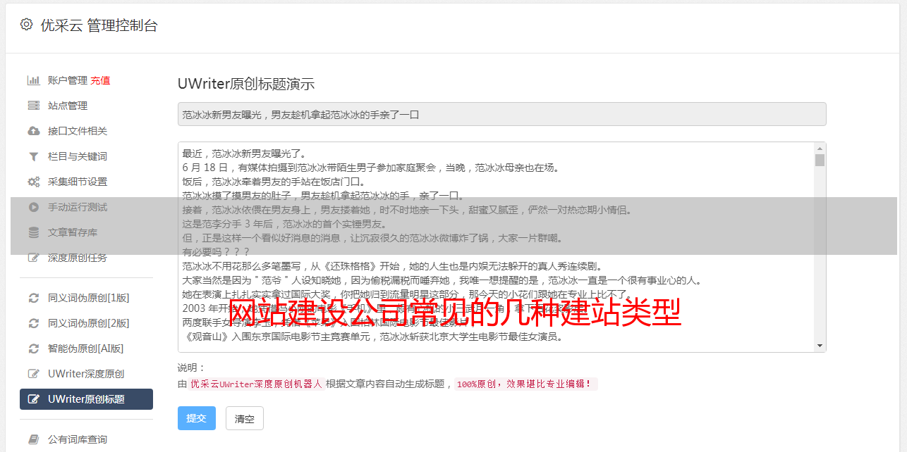 先确定主关键词,再根据关键词确定网站的大方向。 网站的更新内容就是围绕这个字写的。比如网站以“创业”为主要关键词,以后的内容更新肯定会以创业相关的内容为主。确定关键词并尝试选择互联网上没有的词。只要被搜索引擎收录,用户就可以在首页搜索一下这个词,方便网站的理解和推广。 关键词一般是XX+网站主题(主要从事网站构建和网站优化),这是一个关键词。