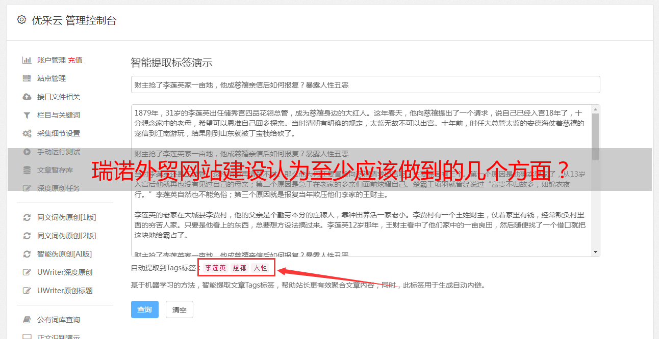 优采云 发布时间: 2021-07-17 23:02瑞诺外贸网站建设认为至少应该做到的几个方面?