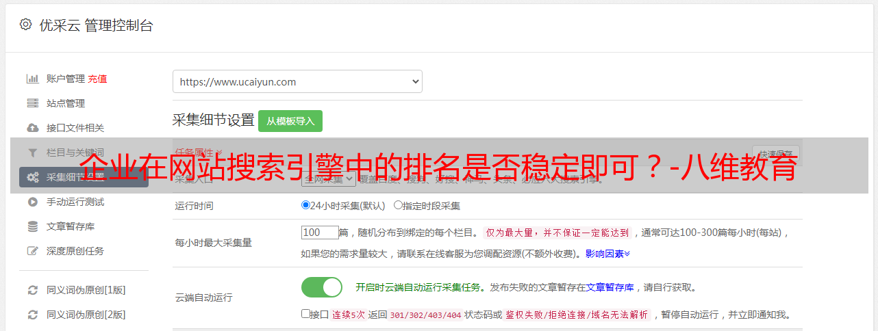 优采云 发布时间: 2021-07-18 00:15企业在网站搜索引擎中的排名是否稳定即可?-八维教育