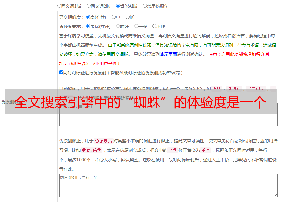 全文搜索引擎中的“蜘蛛”的体验度是一个网站成败的关键因素