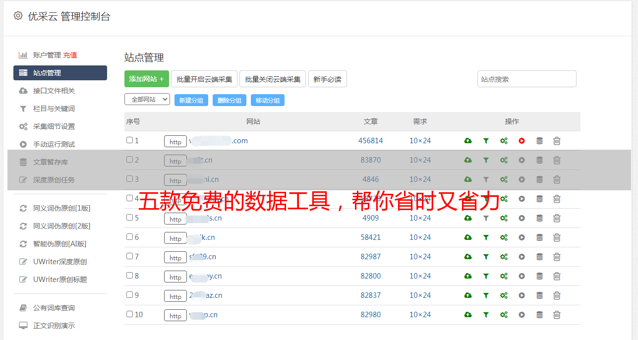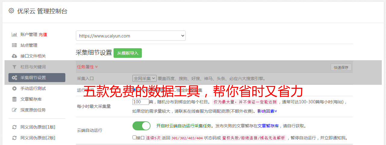 吉首客为一些流行的网站设置了快速爬虫,但学习成本高于优采云。