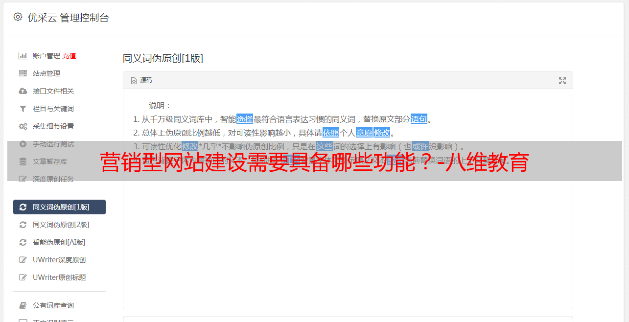 优采云 发布时间: 2021-07-18 19:06营销型网站建设需要具备哪些功能?-八维教育