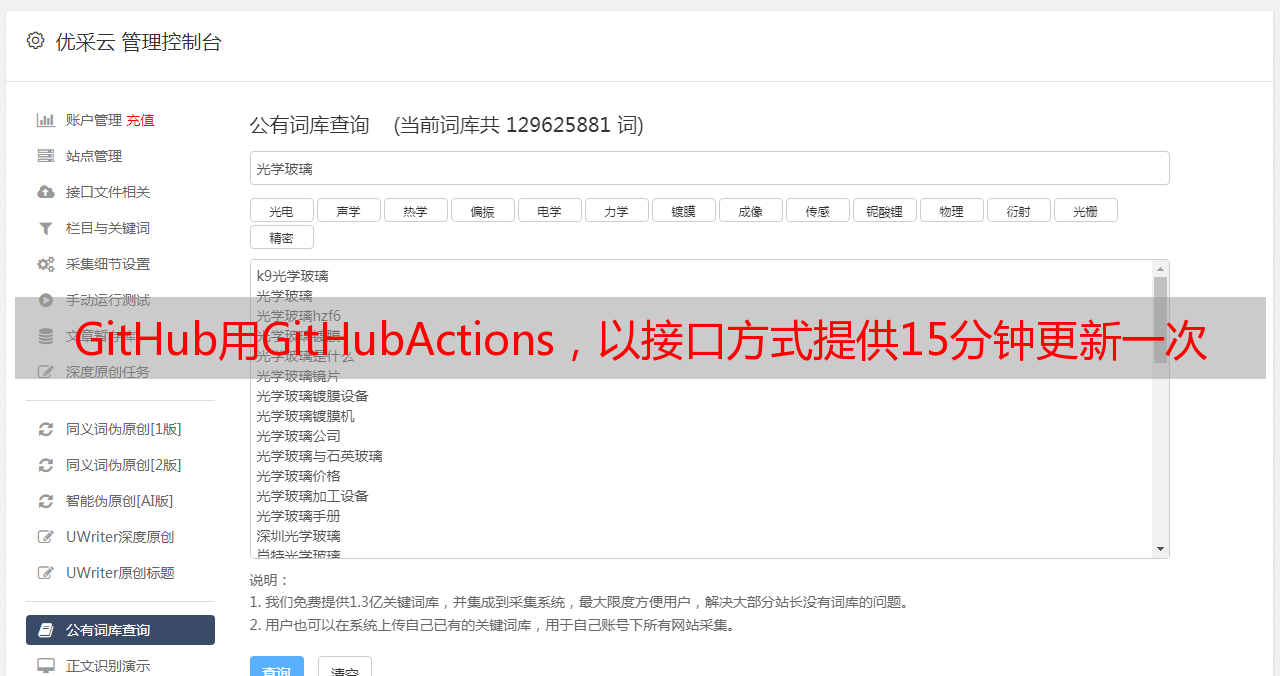 优采云 发布时间: 2021-07-18 19:46GitHub用GitHubActions,以接口方式提供15分钟更新一次